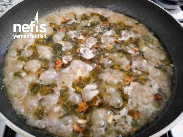 6. 3 su bardağı sıcak suyu tencereye ilave edip bir taşım kaynatın.
