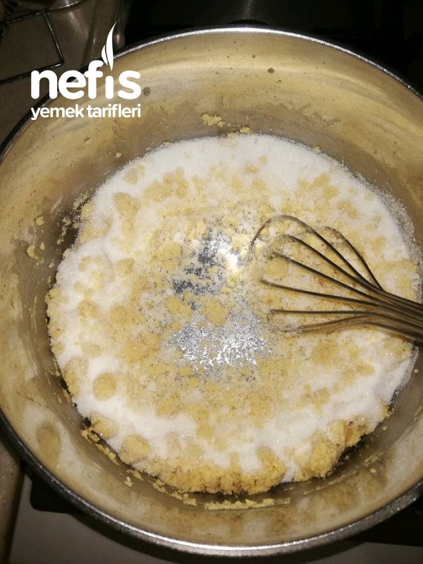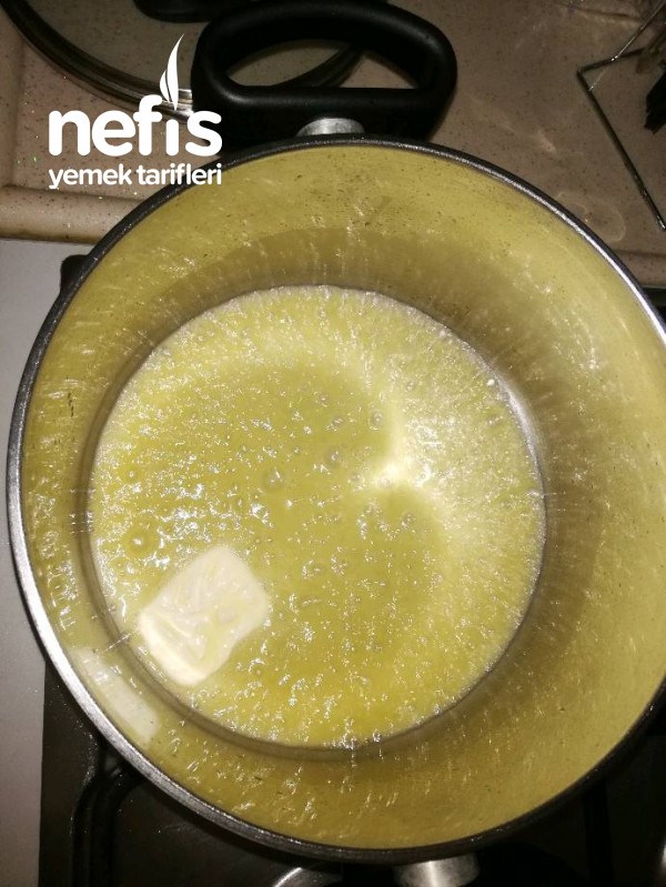 - Bir tencerede margarin / tereyağ eritip unu ekleyiniz ve unun rengi döndüğü an şekeri ilave edip biraz daha kavurunuz.( sürekli karıştırarak pişiriniz ki un yanmasın !)