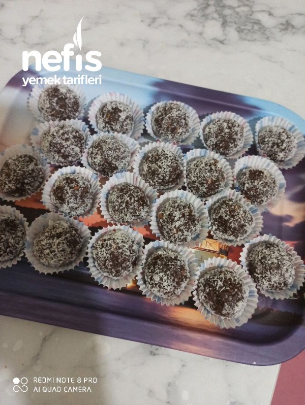 3. Ceviz büyüklüğünde yuvarlayıp Hindistan cevizine bulayıp buzdolabında bekletip servis yapalım ????.