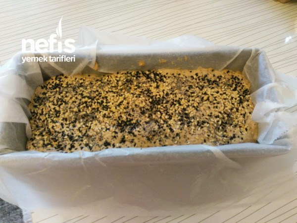 - 1 saat sonra hamuru tekrar 5 dakika kadar yoğurduktan sonra üzerine çörek otu ve susamı serpiyoruz, yağlı kağıt yerleştirdiğimiz buton kek kalıbına alıp tekrar 25 dakika tepsi mayalandırması yapıyoruz.