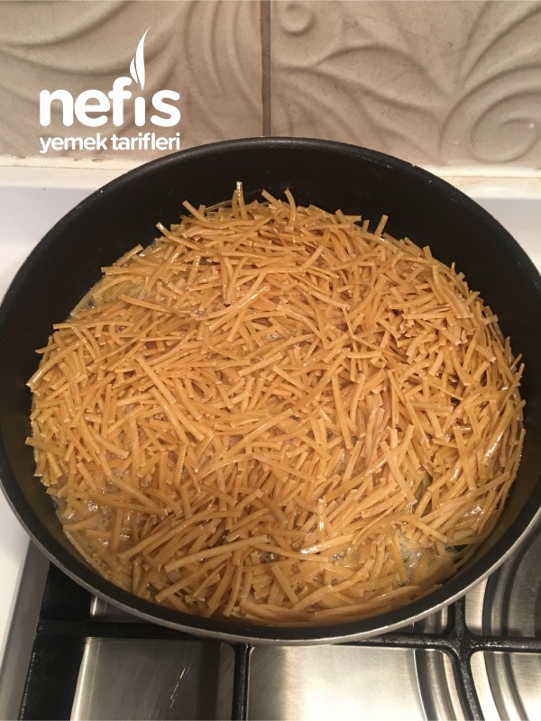 - Tereyağ ve sıvı yağ eritilip erişteler ilave edilip 5 dk kadar kavrulur.