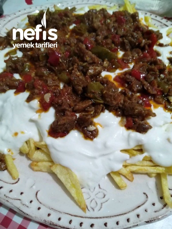 - Ve pişen etimizi üzerine döküyoruz.
