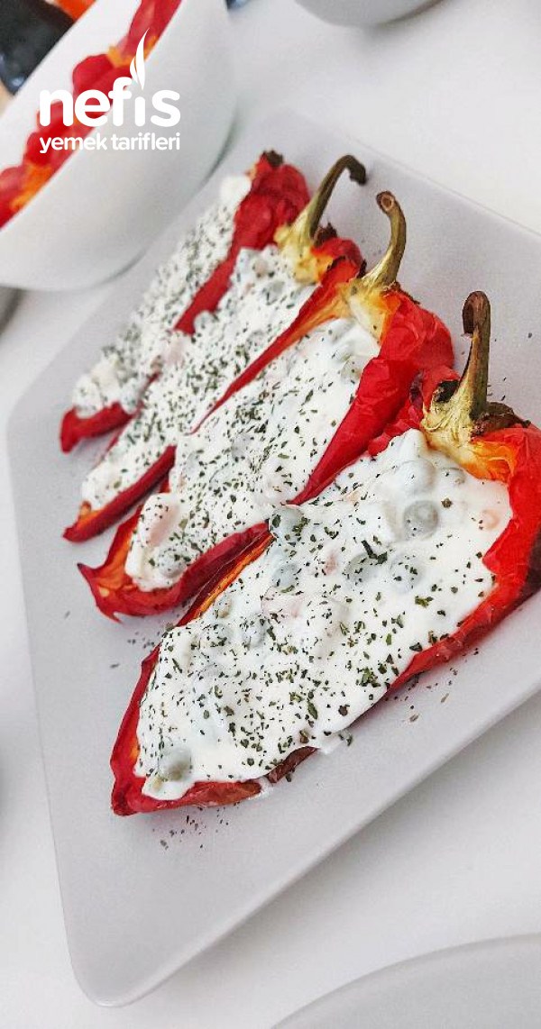 - Piştikten sonra soğumaya bırakalım. Garnitür, yoğurt ve mayonezi karıştırıp soğuyan biberlerin içine koyalım.