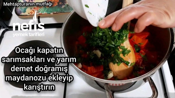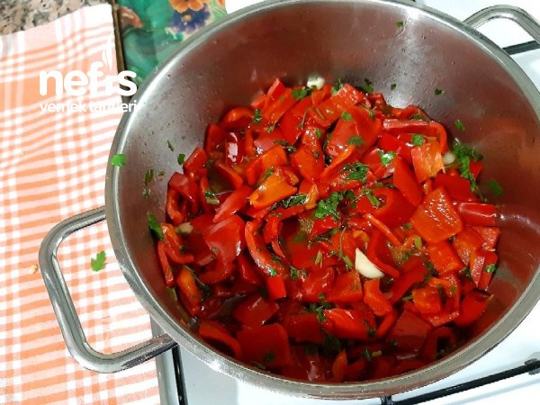 - 7-8 dakika biberler hafif diriliğini kaybedip yumuşayana kadar pişirin ocağı kapatıp son olarak üzerine sarımsak ve maydanozu ekleyin.