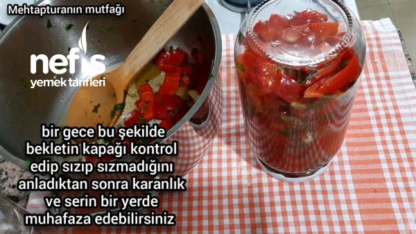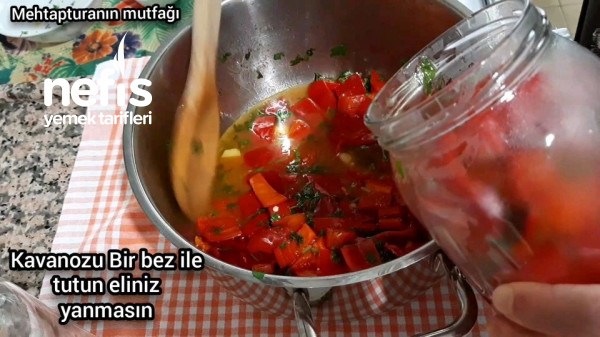 - Karıştırdıktan sonra sıcak sıcak kavanoza doldurun üzerine kalan suyunuda ekleyip kavanozun ağız kısmını güzelce peçete ile kuruladıktan kavanozu ters çevirip sabaha kadar bu şekilde bekletin.