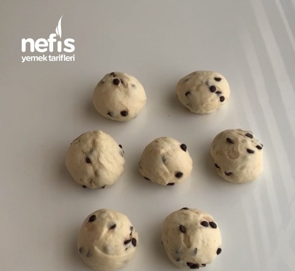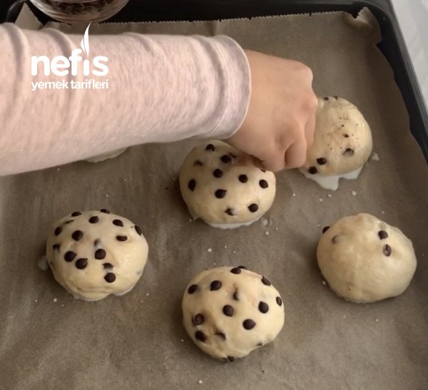- Dinlendikten sonra üzerine süt sürüp hafif bastırarak damla çikolata ile süsleyin.