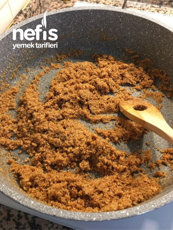 - Ardından kısık ateşte irmiği karıştırarak yavaş yavaş kavuruyoruz.