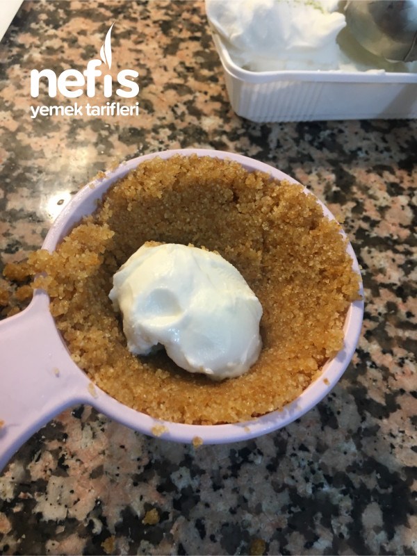 - Ilıdıktan sonra bardağı streç filmle kaplayıp helvayı koyuyoruz ve ortasını oyup dondurma koyuyoruz ve kapatıyoruz.
