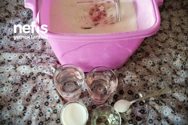 1. Öncelikle hamurumuzun tüm malzemelerini bir kabın içerisinde güzelce yoğuruyoruz, yumuşak bir hamur elde ediyoruz. Üzerini kapatıp 1 saat dinlenmeye bırakıyoruz.