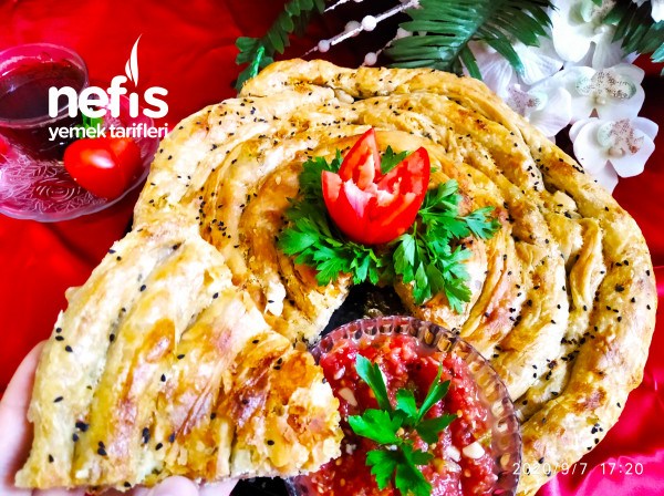 14. İsteğe bağlı üzerine çörekotu, susam serpip 190° önceden ısıtılmış fırında böreğimizin üzeri kızarana kadar pişiriyoruz.