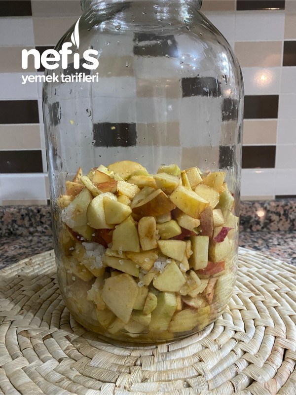 1. Elmaları yıkayıp doğruyoruz büyük kavanoz içine tüm malzemeyi dolduruyoruz .