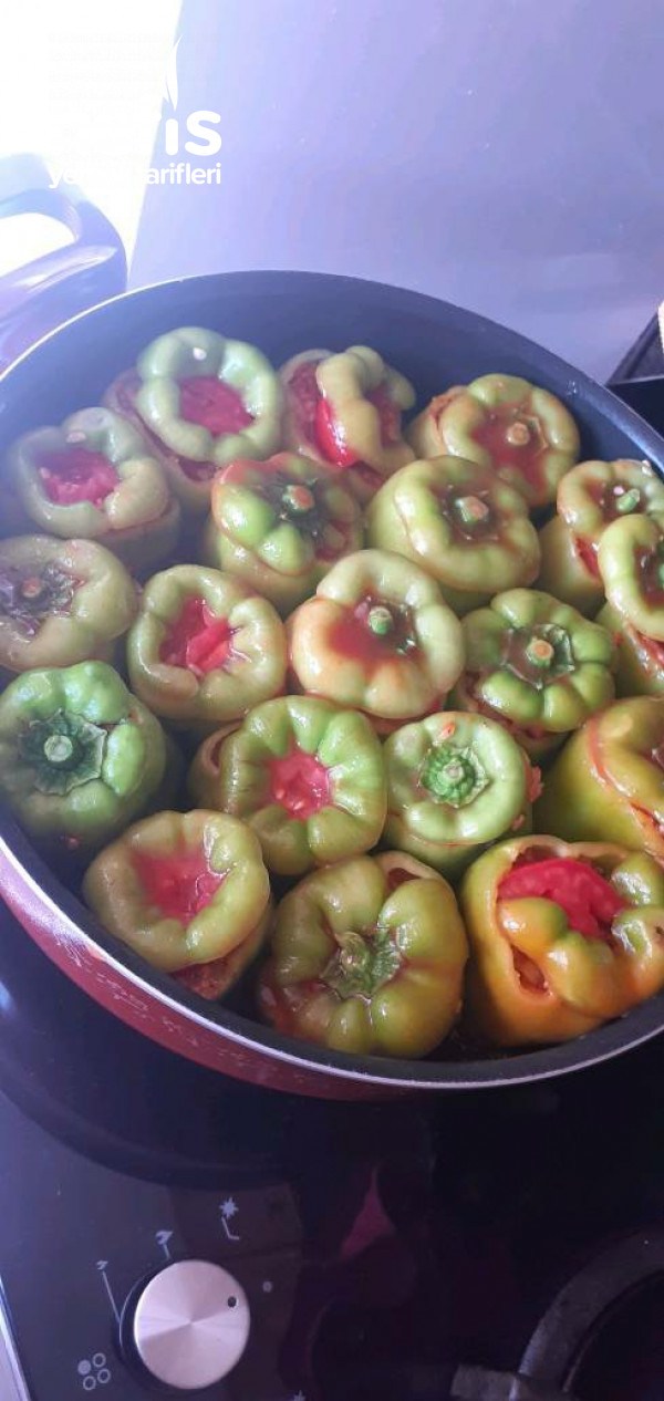 - Dolmalık biberlerimizin içini dolduralım. Tencereye dizelim.