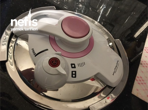 - Baharatlar eklenir ve düdüklünün kapağı kapatılır buhar çıkana kadar free ayarında olacak ,buhar çıktıktan sonra etleri pişirme ayarına (••) getirip ocağın altı kısılır 20 dakika kadar pişirilir.