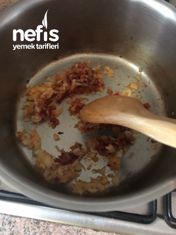 - Salçaları ekleyip, kokusu çıkana kadar kavurun.