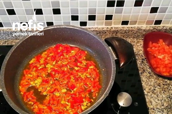 - Tuzu ve küp küp doğranmış domatesi ekleyip kavuralım.