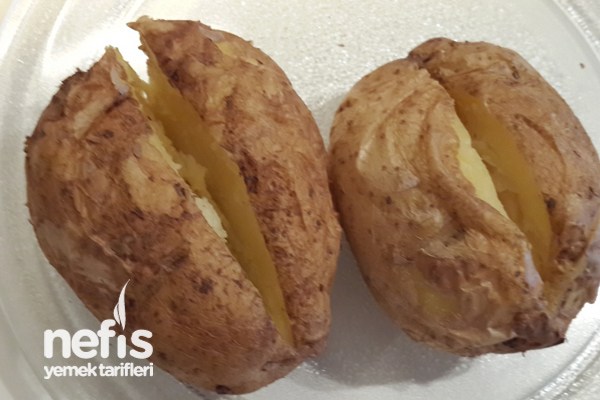 Patatesler yıkanıp kurulandıktan sonra, mikrodalga fırında en yüksek ayarda patates başına 8-10 dakika ( 2 patates için 16-20 dakika) pişirilir. Arada mikrodalganın kapağını açıp ters çevirip kontrol edebilirsiniz. Yumuşamasından piştiğini anlıyorsunuz. Burada ilginç olan kaç patates pişirecekseniz süreyi o kadar kat arttıracaksınız.