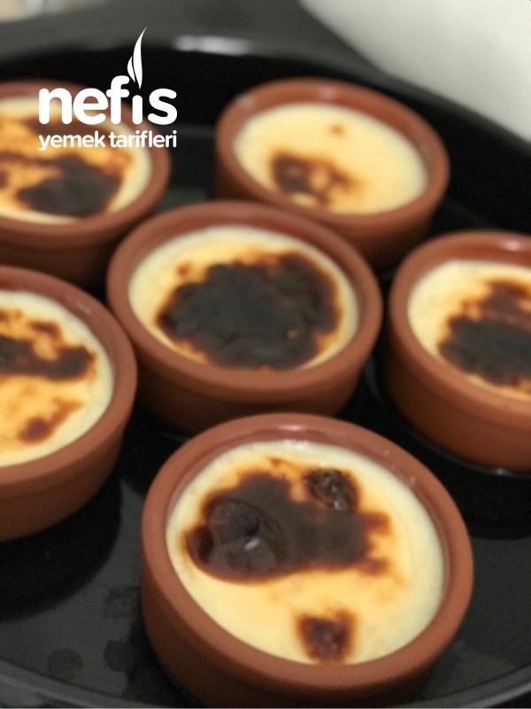 - Fırına dayanaklı kaplara sütlaçları koyduktan sonra tepsiyi yarıya kadar soğuk suyla doldurun kaseleri dizip tepsiyi fırının en üst tarafına koyun.