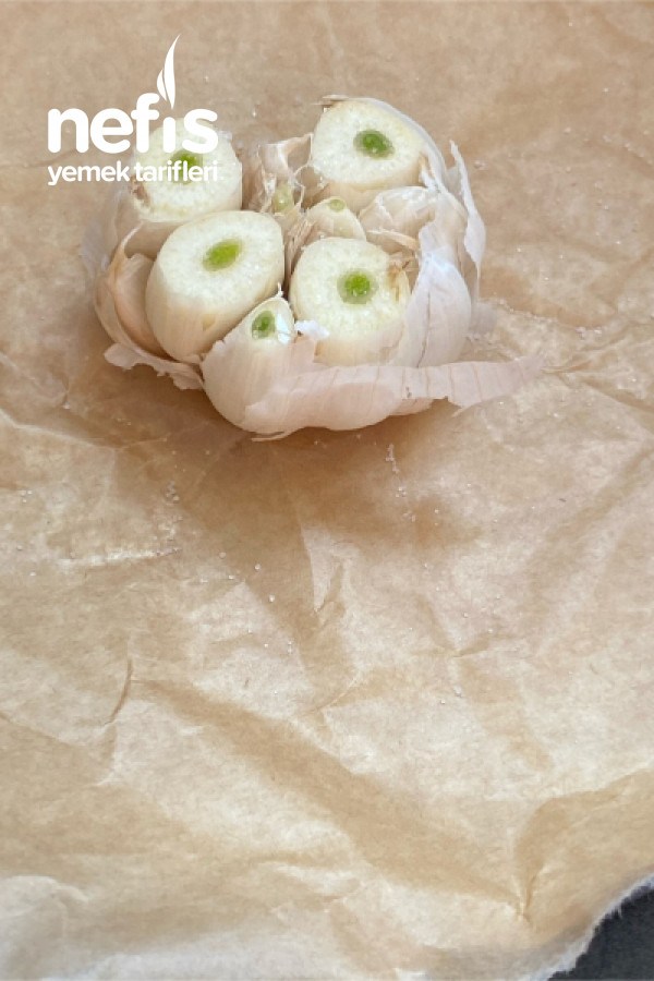 - Ayrıyeten bir baş sarımsağı hafif tuzlayarak önce fırın kağıdına daha sonrada alüminyuma sardım. Bunu daha sonra yoğurtla karıştırıp sos yaptım.