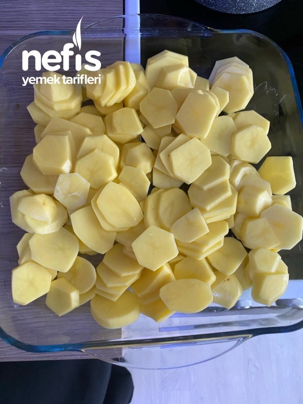 - 1 kg patates (soyulmuş ve ince tekerlek şeklinde kesilmiş)