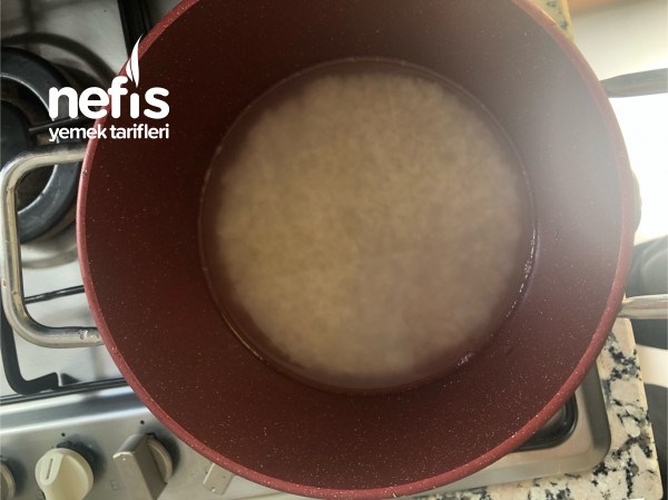 2. 2 su bardağı su ile haşlayalım. Su tamamen bitene kadar.