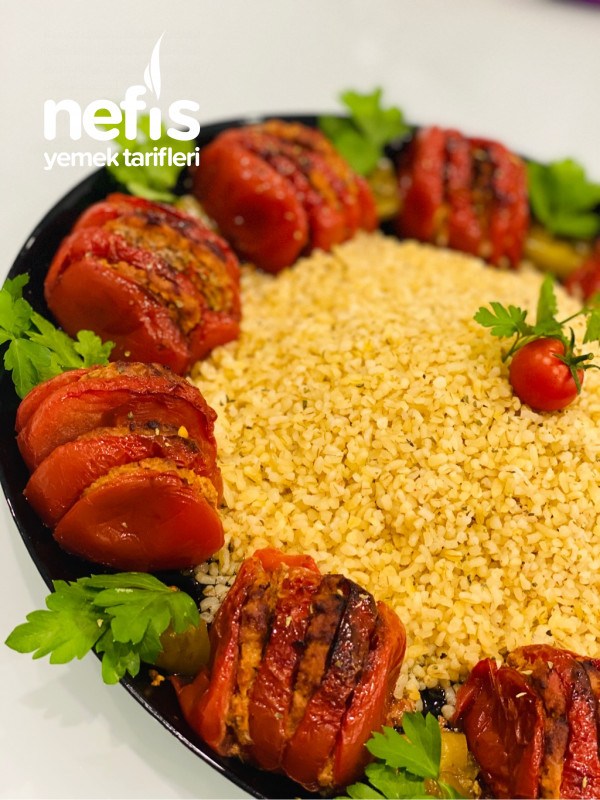 - 200 derece fırında kızarana kadar pişiyoruz, bulgur pilavı ile servis ettim, sizlere de öneririm ☺️afiyet olsun hepimize ✨.