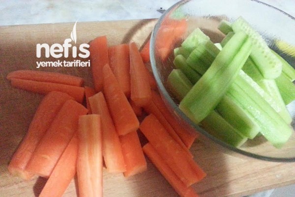 Havuç ve salatalık soyularak çok ince olmayan şeritler halinde doğranır süzme yoğurt ile servis edilir. Dilerseniz yoğurt üzerine pul biber ve dövülmüş ceviz de ekleyebilirsiniz. Ben daha hafif olsun diye sade tüketiyorum. Akşamları tv karşısında yenilebilecek hafif bir aburcubur 🙂 afiyet olsun 🙂