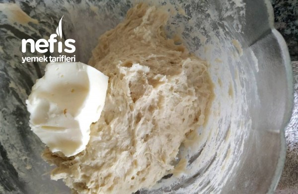 4. ????‍???? un ve su ile hazırlanan (walter roux) hamura ilave edilir ve yoğurulur. Kıvama gelen hamura 15 gr tereyağı ilave edilerek yaklaşık 10 dk yoğurulur. Uzanan ama kopmayan bir kıvam olacak.