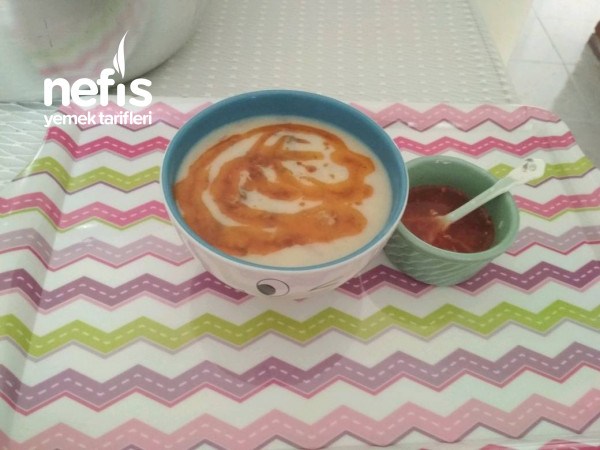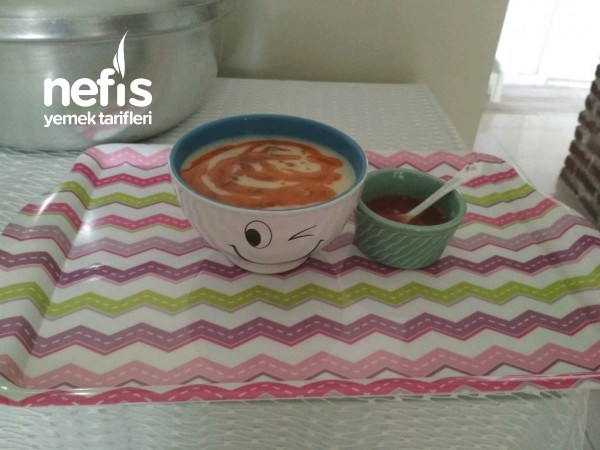 5. Ayrı bir tavada toz biber ve yağ ile sos yapılır çorbanın üzerine gezdirilir