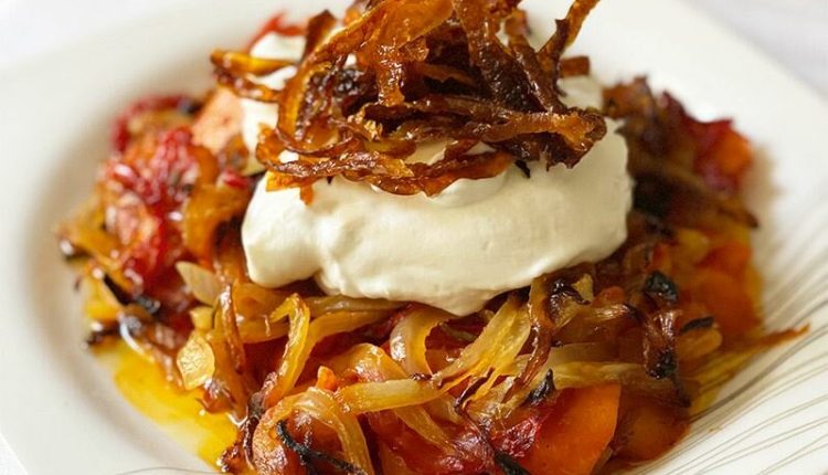 - Fırın kabındaki havuçların üzerine evvel kurutulmuş domatesleri serpin, sonra salçalı karışımı ek edin. En üste karamelize soğanları yayın.
