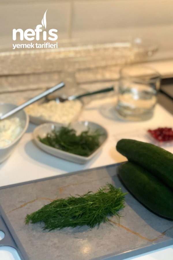 - İçine tuz ve dereotu eklenilerek karıştırılır.