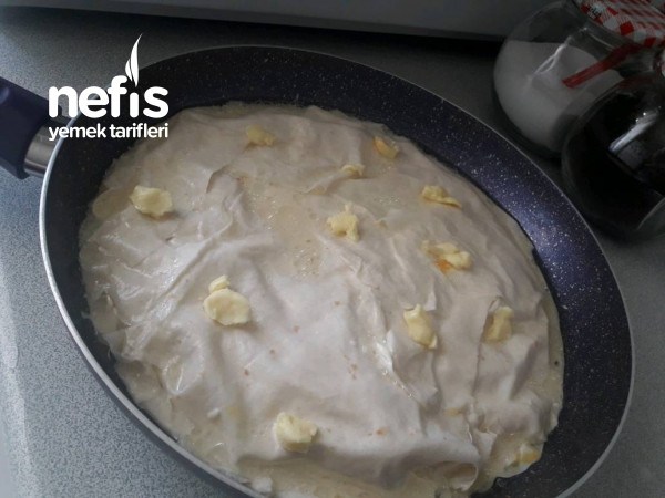 - Böreğin üzerine tereyağı parçaları koyup tavanın kapağını kapatıyoruz.
