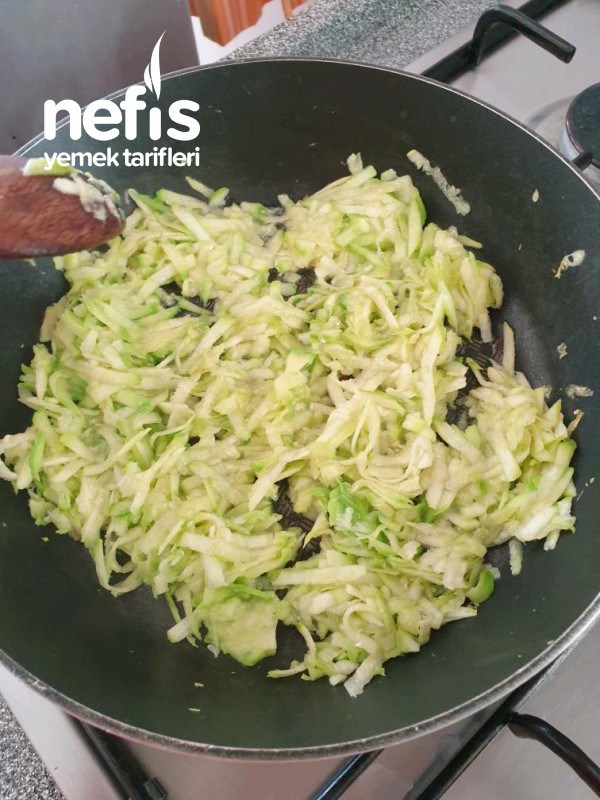 - Bir tavaya 2 kaşık zeytinyağ alın ve kabakları 5 dk soteleyin.