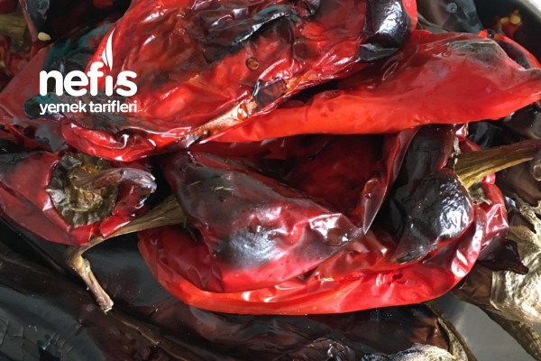 - Öncelikle patlıcan ve biberlerimizi közleyelim. Kabuklarını soyup çekirdeklerinden ayıralım.