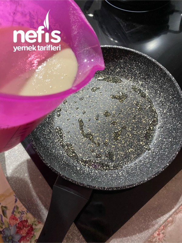 3. Teflon tavayı hafif ısıttıktan sonra direk tavaya göz kararı döküyoruz (ince & kalın isteğe göre).