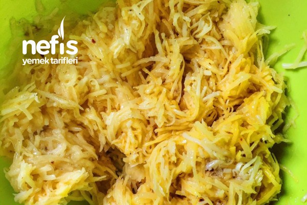 - Üzerine yumurtası ,kaşar rendesi ,zeytinyağı ve baharatlar eklenip karıştırılır.