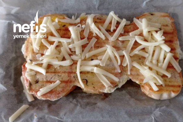 - Ekmeklerin bir tarafı tam kızarmadan üstüne kaşar ekleyip kaşar eriyene kadar tekrar kızartıyoruz.