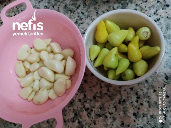 - Kornişon salatalıkları başlarını keserek bir kaç kez yıkıyoruz ,zamanınız varsa sirkeli suda bekletin sarımsakları ayıklayıp irice doğrayalım biberleri de ayıklayıp yıkıyoruz.