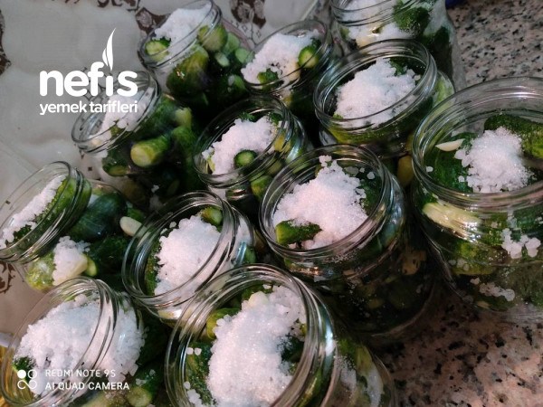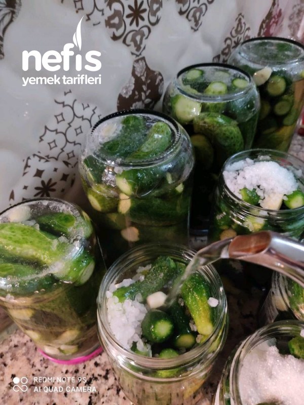 - Diğer kavanozlarıda aynı işlemi uygulayıp en son üzerlerine tuz, toz şeker, sirkeyide ekleyip kaynar suyu aldığı kadar ekliyoruz ve kapakları sıkıca kapatıp ters çeviriyoruz.