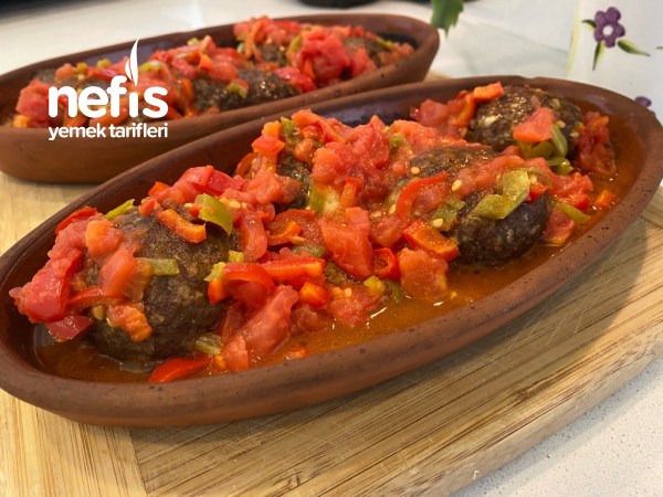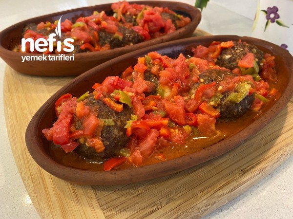 Kiremitte Soslu Kaşarlı Köfte(Videolu)
