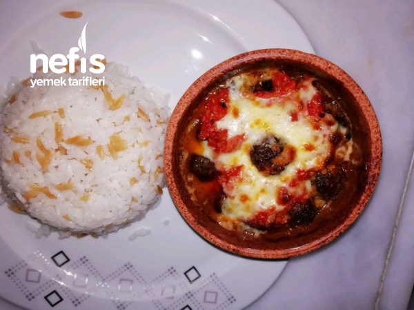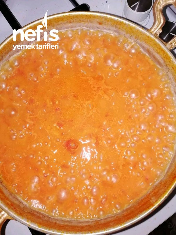 - Pişirdiğimiz domates sosunu güveçte ki köfterlerin üzerine paylaştıralım.