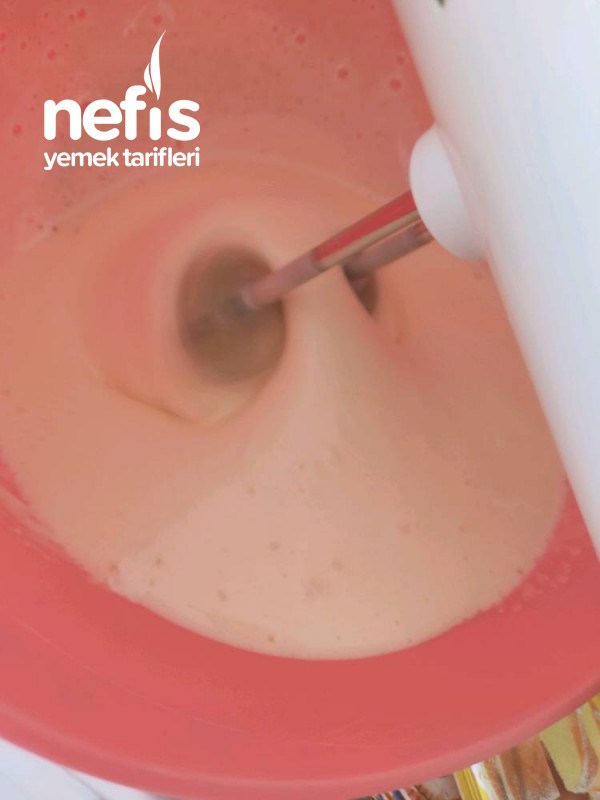 - İçine sıvı yağ ve süt ilave edilip çırpmaya devam edelim.