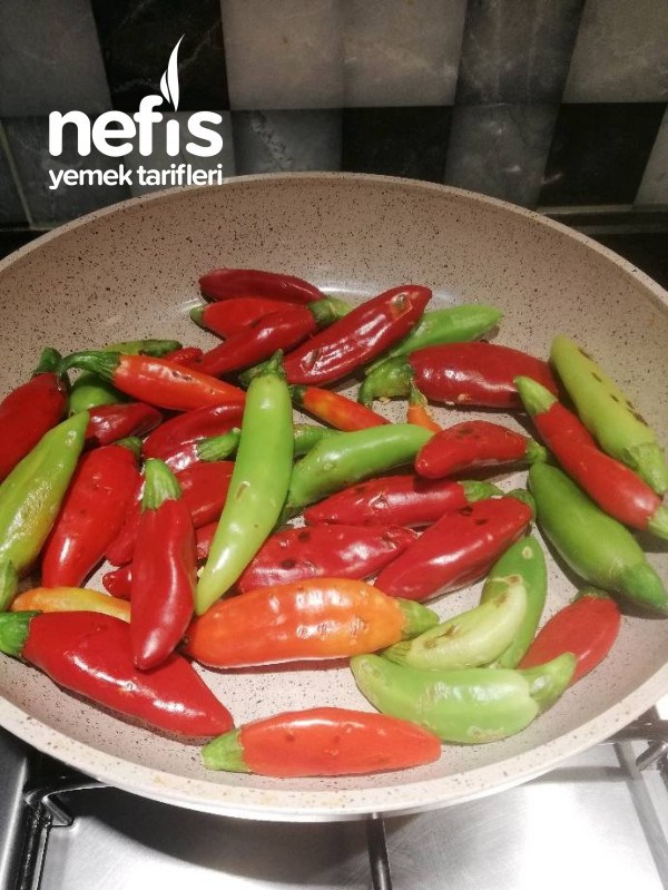- Biberleri yapışmaz tencerede hafif közleyin. Sıcakken kavanoza doldurun.
