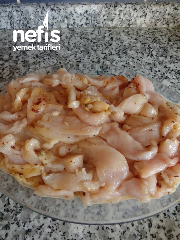 1. Tavuk göğsünü ince uzun doğrayalım.