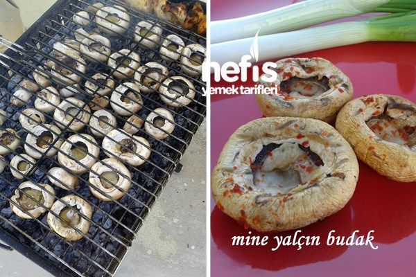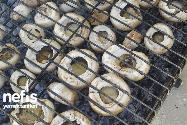 - Mantarların dışını soyuyoruz ve mangal için ızgaraya sıralıyoruz. Mangalda pişiriyoruz.