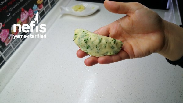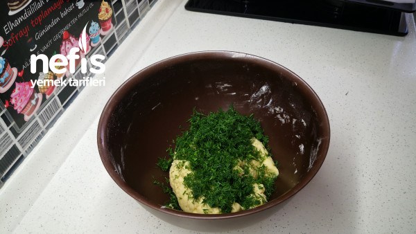 - Ardından ince kıyılmış dereotu eklenir ve homojen olana kadar yoğurulur. 20 bezeye ayrılır.