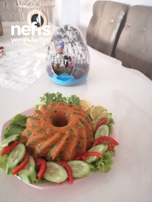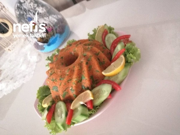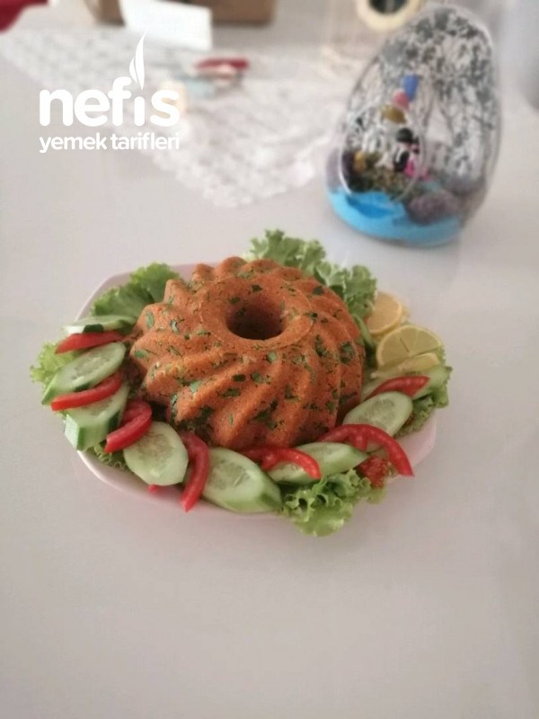 - Yoğurulan hamura doğradığımız yeşillikler ilave ettikten sonra şekil verip ben kek kalıbına bastım o şekilde servis yaptım yenilmeye hazır.