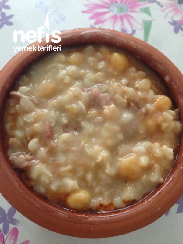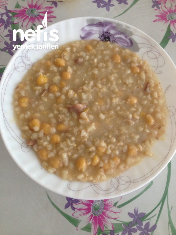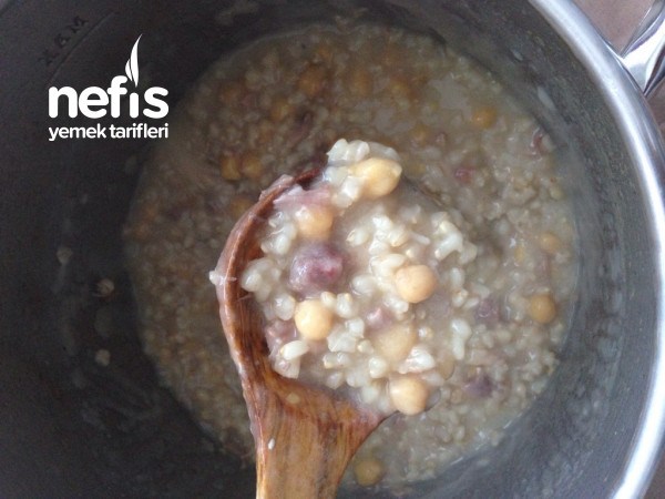 - Akşamdan buğday ve nohutu ıslayalım sabah düdüklüye etli kemiği koyalım üzerine ıslatılmış buğday, nohut, tuzu ve suyunu (Ben yaklaşık 9 su bardağı su kullandım) ekleyip 45 dakika kaynatalım.