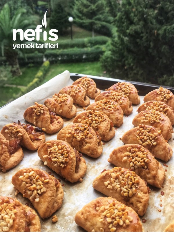 - Fırından çıkan kurabiyelerimizin üstüne ben pekmez gezdirerek servis yaptım siz dilerseniz pudra şekeri de serpebilirsiniz veya bu şekilde de servis edebilirsiniz her türlü çok güzel afiyet olsun. ☺️.Notlar : yoğurt, tereyağ ve yumurta oda sıcaklığında olmalı.Meyveli harcımızın fazla gelen kısmını buzluğa kaldırıp sonradan tekrar kullanabiliriz.Un miktarı farklılık gösterebilir kulak memesi yumuşaklığında bir hamur yapmaya çalışın.