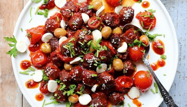 - Soğuk sunum için; Kızarmış köfteleri barbekü sos ve bal ile harmanlayıp domates dilimleri ile servis tabağına alın. Baharatlar ile sızma zeytinyağını karıştırarak sosu üzerlerinde gezdirin. Taze fesleğen ile süsleyerek servis edin.