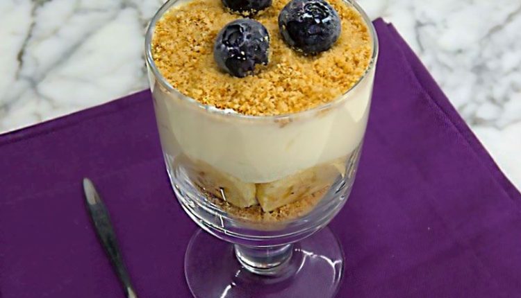 - Servis tabaklarının tabanına bisküvi koyulur, meyveler dizilir muhallebi koyulur. Üzerine tekrar bisküvi koyularak sunulur.
